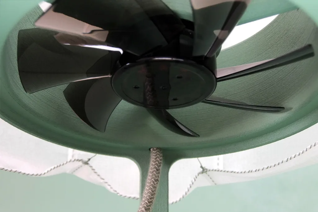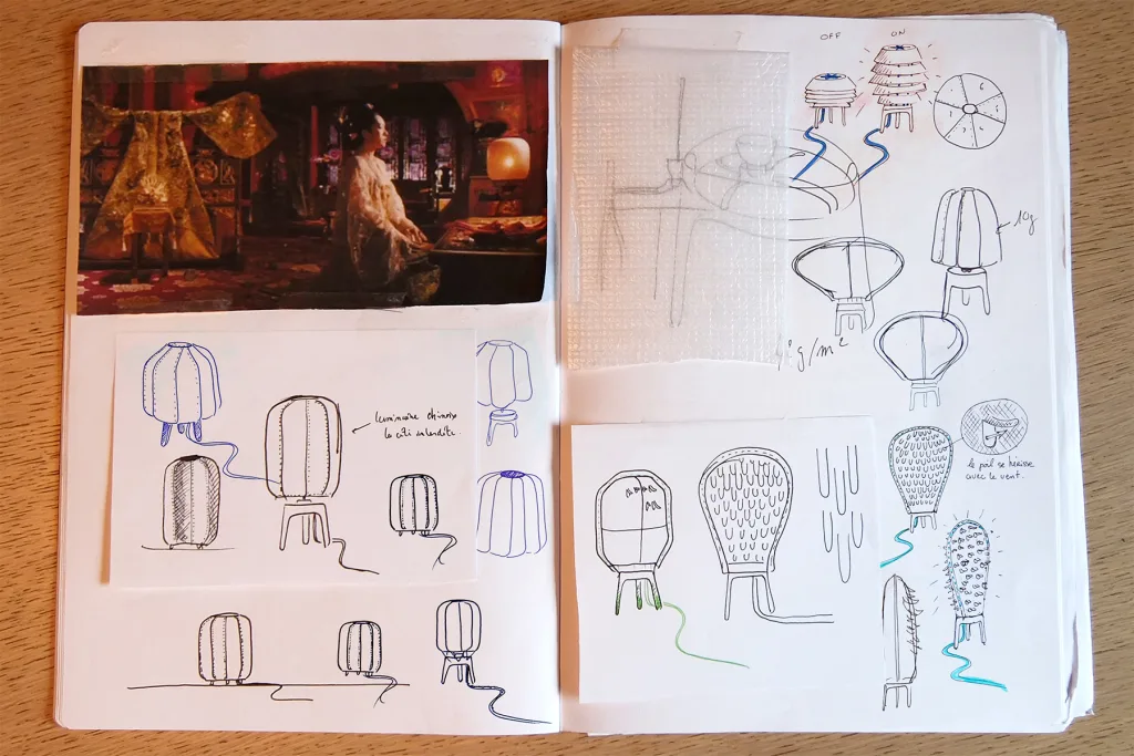 Beyond a first surprise, subtle movements generated by the breath of air in the lampshades give to those lamps a unique and mesmerizing personality.