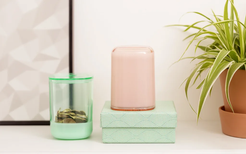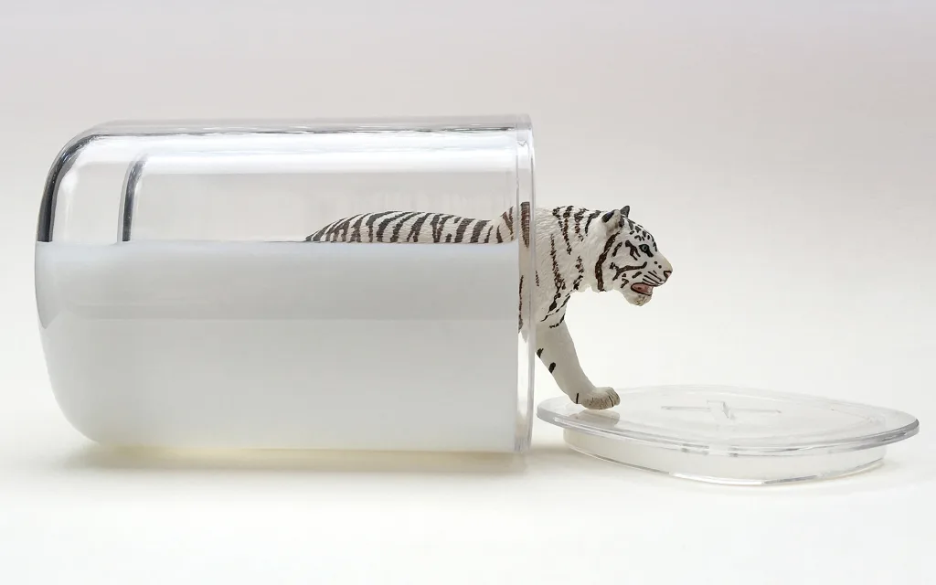 Thanks to a principle of dual wall, a colored opaque liquid covers the entire volume or disappears at the base of the volume.